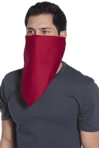 This bandana serves as a multifunctional versatile face covering as well as a headband and neckerchief. Fold bandana diagonally and tie around head to cover face as desired. 100% cottonFinished seams prevent frayingMeasures: 21.5 x 21.5 Machine washableNon-medical use only