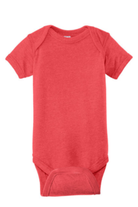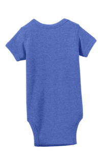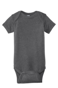 Soft and lightweight this bodysuit has a heathered pattern in a variety of colors for a cool casual look and retro feel. Lap shoulders make for easier changing. 4.5-ounce 60/40 combed ring spun cotton/poly vintage heathered fine jersey EasyTear label for additional comfort and ability to brand as your own Flatlock seams Double-needle ribbed binding on neck shoulders sleeves and leg openings Innovative three-snap closure